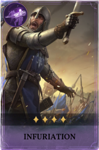30% chance all heroes enter Double Attack state, increases commander's might by 50.00 (might bonus) for 3s. [★1: extra +50 commander might on activation] [★3: Double Attack trigger chance +5% → 35%] [★5: +35% commander might damage for 3s]