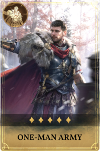 5 Lv40: After commander sig active: -30% troop damage taken 3s (+5% from 1 = 35% total). After 4 triggers → Conquest state 6s: commander sig active can crit (+20% crit rate, +10% activation, +25% damage might bonus), recovery 100% (might bonus, 1/3s) after skill damage. Battle start: Conquest 6s (cd: 60s). [1: +5% damage reduction] [3: +25% commander sig damage in Conquest] [5: triggers 5→4]. 0: -30% reduction, 5 triggers, no conquest damage buff.